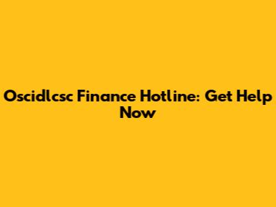 Oscidlcsc Finance Hotline: Get Help Now
