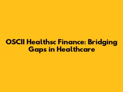 OSCII Healthsc Finance: Bridging Gaps In Healthcare