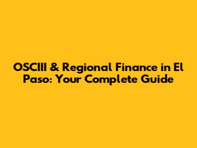 OSCIII & Regional Finance In El Paso: Your Complete Guide