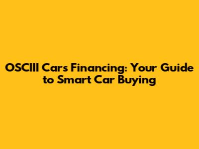 OSCIII Cars Financing: Your Guide To Smart Car Buying
