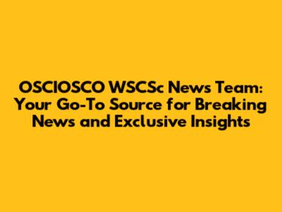 OSCIOSCO WSCSc News Team: Latest Updates & Insights