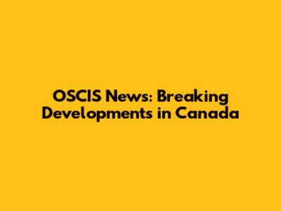OSCIS News: Breaking Developments In Canada