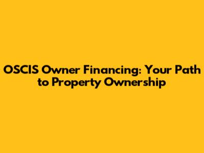 OSCIS Owner Financing: Your Guide To Property Ownership