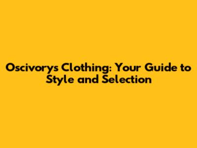 Oscivory's Clothing: Your Guide To Style And Selection