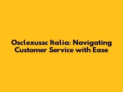 Osclexussc Italia: Your Guide To Customer Service