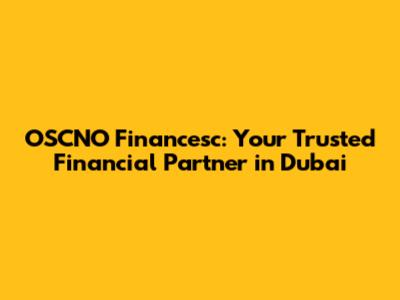 OSCNO Financesc: Your Trusted Financial Partner In Dubai