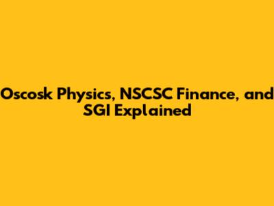 Oscosk Physics, NSCSC Finance, And SGI Explained