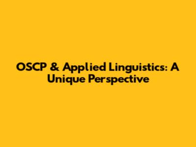 OSCP & Applied Linguistics: A Unique Perspective