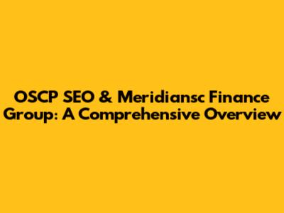 OSCP SEO & Meridiansc Finance Group: A Comprehensive Overview