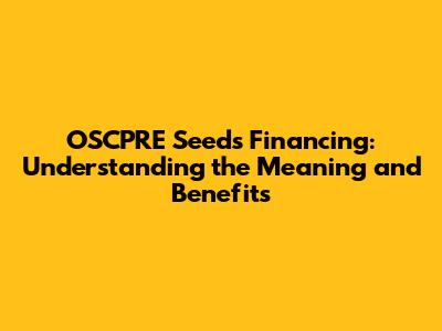 OSCPRE Seeds Financing: Meaning And Benefits