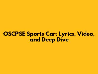 OSCPSE Sports Car: Lyrics, Video, And Deep Dive