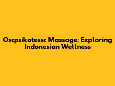 Oscpsikotessc Massage: Exploring Indonesian Wellness