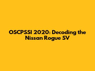 OSCPSSI 2020: Decoding The Nissan Rogue SV