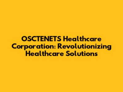 OSCTENETS Healthcare: Revolutionizing Healthcare Solutions