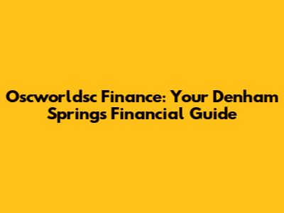 Oscworldsc Finance: Your Denham Springs Financial Guide