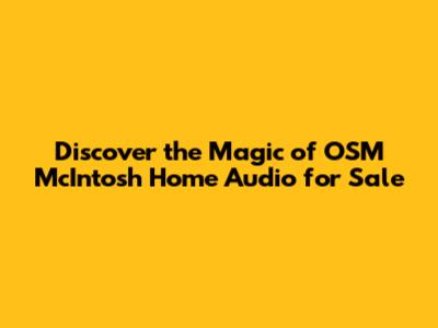 Discover the Magic of OSM McIntosh Home Audio for Sale