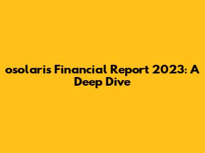 Osolaris Financial Report 2023: A Deep Dive
