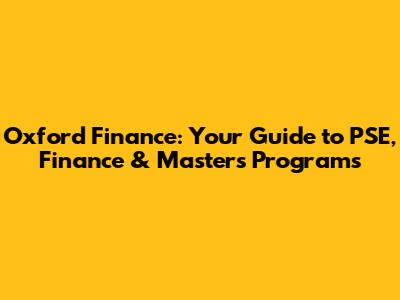 Oxford Finance: Your Guide To PSE, Finance & Master's Programs