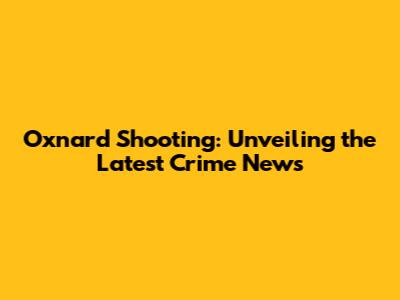 Oxnard Shooting: Latest Crime News And Updates