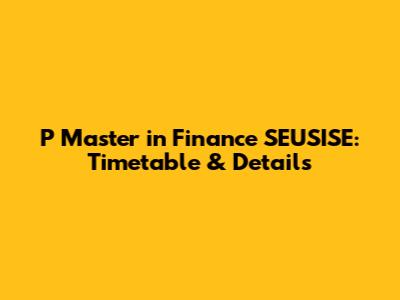 P Master In Finance SEUSISE: Timetable & Details