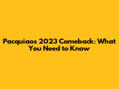 Pacquiao's 2023 Comeback: What You Need To Know