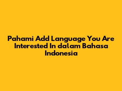 Pahami 'Add Language You Are Interested In' Dalam Bahasa Indonesia