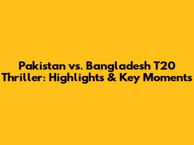 Pakistan Vs. Bangladesh T20 Thriller: Highlights & Key Moments