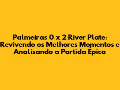 Palmeiras Vs. River Plate: Melhores Momentos E Análise