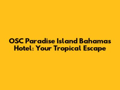 Hey guys! Planning a trip to the Bahamas? Awesome! You're in for a treat, especially if you're thinking about staying at the OSC Paradise Island Bahamas Hotel. This place is a slice of paradise, offering everything you could dream of for an unforgettable vacation. From pristine beaches and crystal-clear waters to luxurious accommodations and exciting activities, the OSC hotel has it all. Let's dive deep into what makes this hotel a top choice for travelers seeking sun, sand, and serious fun.