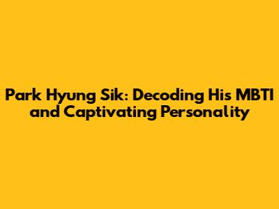 Park Hyung Sik: Unveiling His MBTI Personality & Charms