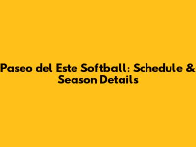 Paseo Del Este Softball: Schedule & Season Details