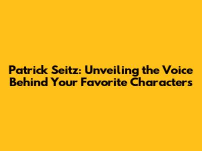 Patrick Seitz: Unveiling The Voice Behind Your Favorite Characters
