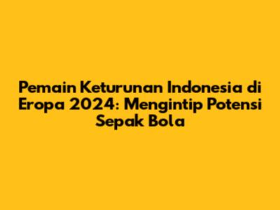 Pemain keturunan Indonesia di Eropa 2024 menjadi topik yang sangat menarik bagi para penggemar sepak bola Tanah Air. Gairah terhadap sepak bola Indonesia tak pernah surut, dan kehadiran pemain-pemain keturunan yang berkiprah di Eropa selalu menjadi sorotan utama. Tahun 2024 menjanjikan lebih banyak kejutan dan potensi, dengan munculnya talenta-talenta muda yang siap mengharumkan nama Indonesia di kancah sepak bola Eropa.