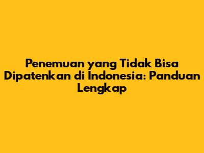 Penemuan Yang Tidak Bisa Dipatenkan Di Indonesia