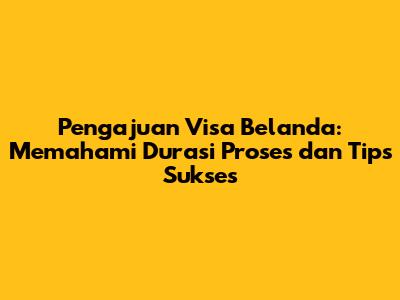 Hey guys! Kalau kalian berencana liburan, studi, atau bekerja di Belanda, salah satu hal penting yang perlu kalian urus adalah visa Belanda. Tapi, pasti pertanyaan yang paling sering muncul adalah, "Pengajuan visa Belanda berapa lama sih?" Nah, di artikel ini, kita bakal kupas tuntas soal durasi proses pengajuan visa Belanda, faktor-faktor yang memengaruhi, dan tips jitu supaya pengajuan visa kalian lancar jaya. Yuk, simak!