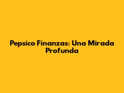 Pepsico Finanzas: Una Mirada Profunda