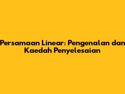 Persamaan Linear: Pengenalan Dan Kaedah Penyelesaian