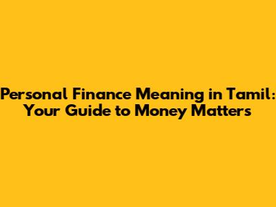 Understanding Personal Finance in Tamil