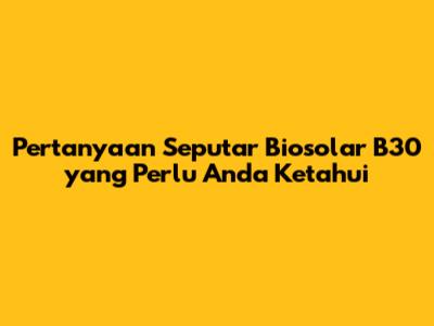 Pertanyaan Seputar Biosolar B30 Yang Perlu Anda Ketahui