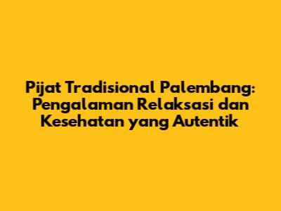 Guys, if you're ever in Palembang and feeling the need to unwind, or maybe you're just looking to give your body some much-needed TLC, then you absolutely have to check out the pijat tradisional scene. Palembang is brimming with places offering traditional massage, or "pijat," and it's an experience that goes way beyond your typical spa day. This isn't just about relaxation; it's about tapping into centuries-old techniques, blending physical therapy with holistic wellness. So, let's dive into the world of pijat tradisional Palembang, explore what makes it so special, and discover how it can benefit your body and mind. Prepare to be amazed by the authentic experience that awaits you!