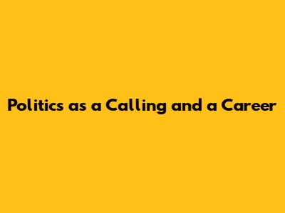 Politics: A Calling And A Career
