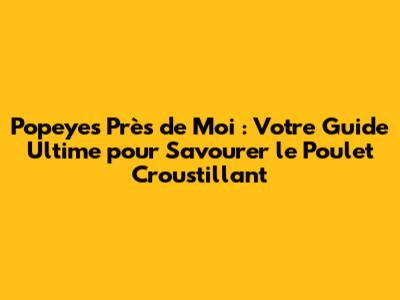 En appliquant ces astuces, vous serez en mesure de trouver facilement un Popeyes près de chez moi et de profiter d'une expérience culinaire sans souci. Alors, à vos recherches, et bon appétit !