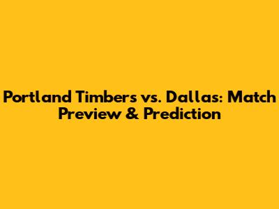Portland Timbers Vs. Dallas: Match Preview & Prediction