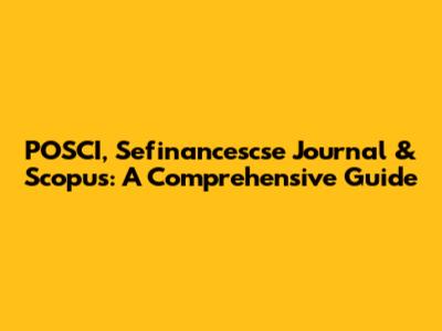 POSCI, Sefinancescse Journal & Scopus: A Comprehensive Guide