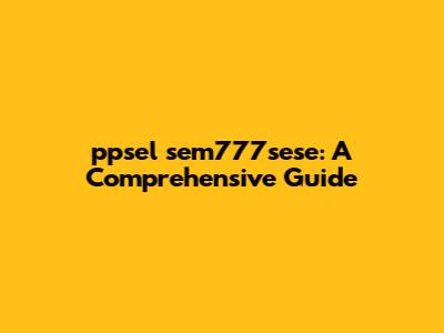 Ppsel Sem777sese: A Comprehensive Guide