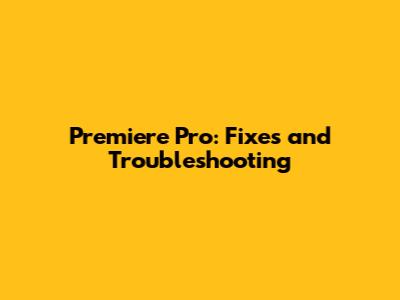 Premiere Pro: Fixes And Troubleshooting