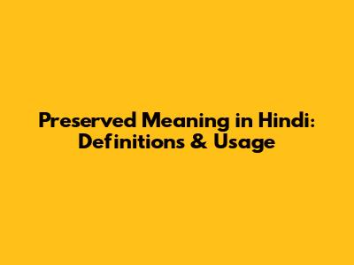 Preserved Meaning In Hindi: Definitions & Usage