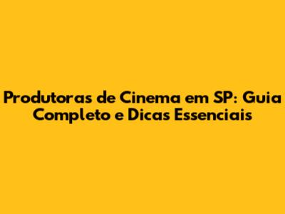 Produtoras De Cinema Em SP: Guia Completo E Dicas Essenciais