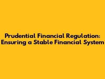 Prudential Financial Regulation: Ensuring A Stable Financial System