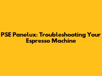 PSE Panelux: Troubleshooting Your Espresso Machine
